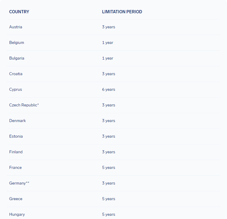 Your right to flight compensation under EC 261 does eventually expire, so it’s important to know the Statute of Limitations for your claim. You can see the exact time limits for each country here. It’s important to know that several different time limits can apply to your claim, as it depends both on where you were flying and where the airline has its HQ.